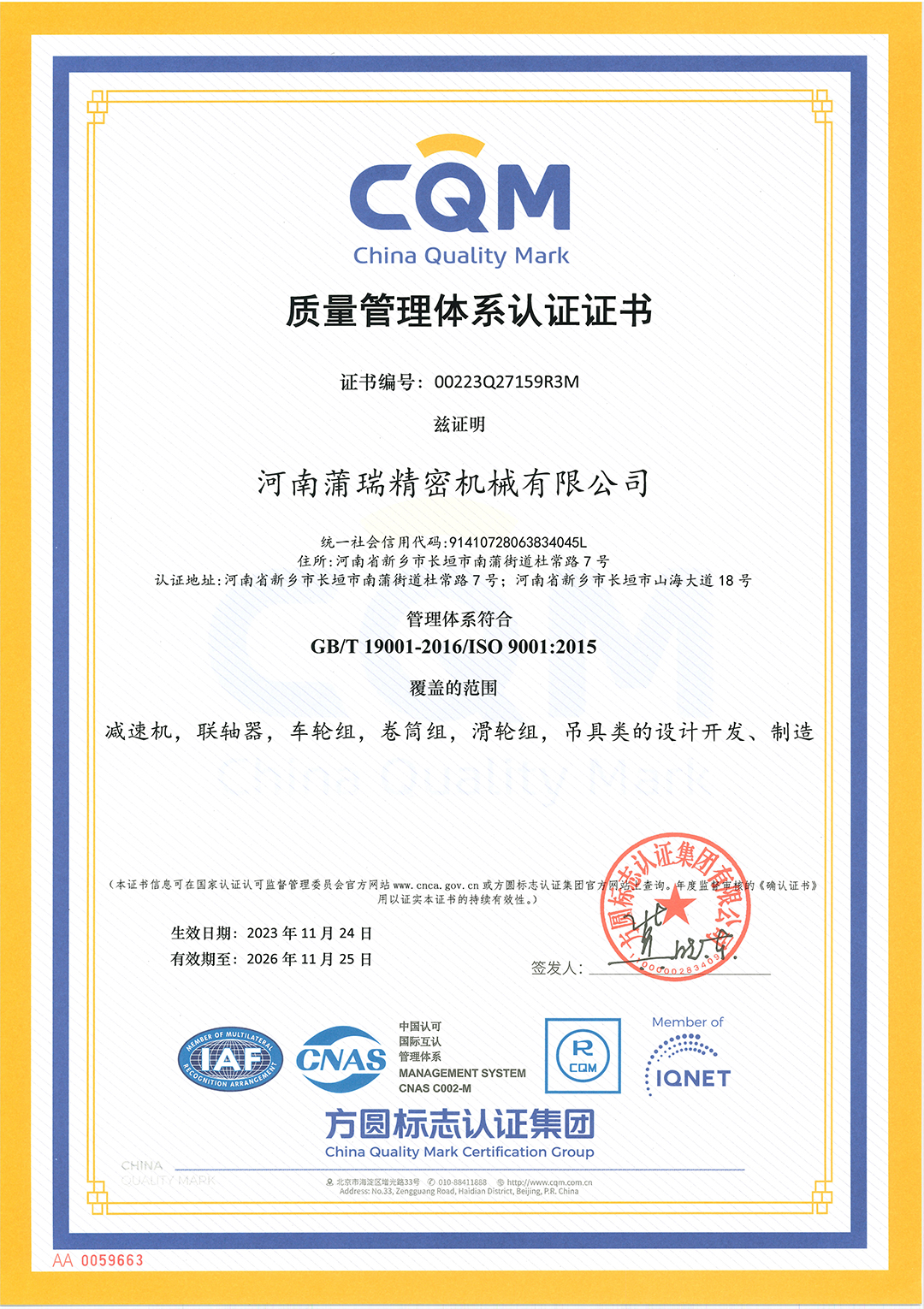 以“关注客户,制造精品”为质量理念,主营产品包括新中式减速机、行星减速机、冶金专用减速机、车轮组、吊钩滑轮组、卷筒组、联轴器等五大品种上千种系列。